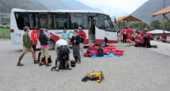After everyone arrived at the meeting spot, we boarded the bus for a 2+ hour drive to a restaurant where we enjoyed breakfast and the opportunity to pick up any last minute supplies. We drove for another 30 minutes to the village of Piscachuco. It was time for everyone including the porters to unload and conduct a final check of the equipment and supplies before setting off for 4 days.